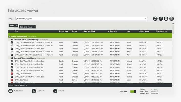 באמצעות ביקורת Microsoft NTFS המשולבת בכל מערכות Windows, File Audit service סורק ללא הרף את יומני האבטחה של כל המכונות המבוקרות בזמן אמת כדי ללכוד את כל אירועי הגישה הרלוונטיים – וניסיונות גישה על פני מערכת אחת או מספר מערכות Windows