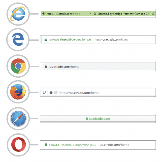 בגלל תהליך אימות אמין זה, דפדפנים פופולריים כמו Safari ו- Microsoft Edge מציגים מחווני אבטחה נוספים, כולל "סרגל הכתובות הממותגים", הכולל את שם המותג המאומת של החברה המפעילה את האתר בצמוד לכתובת האתר בחלק העליון של ממשק הדפדפן. שם החברה בסרגל הכתובות הממותג מציין כי זהותו של מפעיל אתר זה היא מידע מהימן מאוד ומגלה את הזהות הספציפית של החברה המפעילה את האתר.